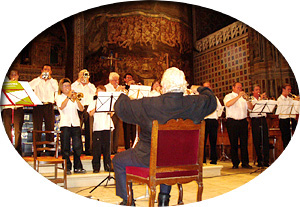 dirigeant le Final du concert avec les meilleurs trompettistes classiques de Midi Pyrénées, de l'Orchestre du Capitole de Toulouse aux jeunes musiciens d'Albi