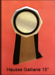 Vue de l'inclinaison de 15° de la hausse Galliane fournie par la société allemande PAULUS spécialiste de composants d'archets de luxe
