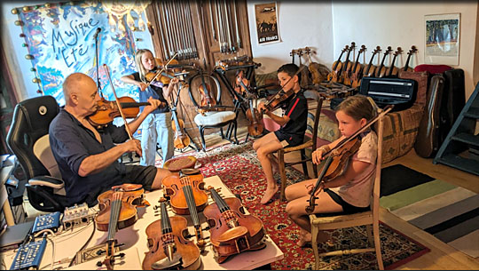 Actualisé le 25 septembre 2024 ![]() Décès de notre amie guitariste classique Valérie DUCHATEAU le 23 novembre 2024 Elle a été l'une des 2 ou 3 plus grandes guitaristes classique féminine du monde. Elle a été celle qui a remplacé Ida Presti après sa disparition dans le fameux duo Ida Presti Alexandre Lagoya, devenu le duo Valerie Duchateau - Alexandre Lagoya. Pour Violonis, plus tard, elle a joué avec Juan Carmona, L.Subramaniam et s'est consacré ensuite à des célèbres magazines consacrés à la guitare classique tout en continuant de mener sa carrière de concertiste. Guitariste classique et fingerstyle elle a enregistré 14 albums, donné plus de 1000 concerts, elle avait 11 ans lors du premier. En 2023 elle a enregistré un beau dernier album avec Antoine Tatichet et donné son dernier concert le 22 octobre 2023 à Narbonne . Elle a lutté contre la maladie avec un grand courage dans un combat acharné mené avec son compagnon Jean Jacques Voisin et son fils Romain. Elle nous laisse terrassés par la nouvelle de sa disparition, d'autant plus que nous ne savions pas qu'elle était atteinte d'une grave maladie. Très amie de Marcel Dadi décédé lors de l'explosion de son avion de retour en France après le décollage de New York le 17 juillet 1996, elle avait échappé miraculeusement à la mort, décidant au tout dernier moment de rester aux Etats Unis au lieu de voyager avec lui pour assister au concert de Juan Carmona, au grand festival de guitare de Nashville ou elle avait également joué au côté de Marcel Dadi. Aujourd'hui c'est Valérie que nous pleurons ! les obséques auront lieu le vendredi 29 novembre à 14h à l'église Notre Dame à Saint Mandé, 84 avenue du général De Gaulle. Elle sera inhumée au cimetière sud de Saint Mandé, 25 rue du général Archinard 75012 Paris . Une scène sera aménagée salle paroissiale face à l'église pour ses amis musiciens qui auront a coeur de jouer pour elle en l'accompagnant dans l'au delà. Courant décembre un hommage sera organisé pour ses amis catalans à CERET, ou elle a laissé tant d'empreintes. La date sera communiquée ultérieurement . Va dans la paix et l'amour, chère Valérie . ![]() ![]() JEAN LUC PONTY poursuit le remixage de ses albums en 2024 Sa production discographique qui a eu un succès retentissant dans le monde entier a influencé de très nombreux musiciens, pas seulement des violonistes ! Il reste un des deux ou trois musiciens Français les plus connus et reconnus dans le monde. ![]() Sur TARISIO Jean Luc Ponty vend 3 violons électriques qui ont contribué à sa célébrité mondiale 2 Barcus Berry: un 4 cordes / un 5 cordes et un Zeta ![]() ![]() ![]() MATHIAS LEVY Violoniste de jazz Français au talent hors du commun, doté d'une inventivité et d'une maitrise époustouflante, il est l'un des tous meilleurs au monde actuellement. En septembre 2024 il essaye un violon de Jean Baptiste Vuillaume propriété du centre Violonis Stéphane Grappelli. qu'il a trouvé extraordinaire détectant immédiatement ses qualités d'éclat et de projection. A droite, un Francesco Gobetti luthier Vénitien majeur du 18ème siècle et un Stefano Scarampella de 1910 luthier italien de Mantoue, très prisé par les violonistes. Les 2 ont également été essayés par Mathias. ![]() Cours de VIOLON au Centre Violonis Stéphane Grappelli Cours de Violon à l'année et en stages ![]()